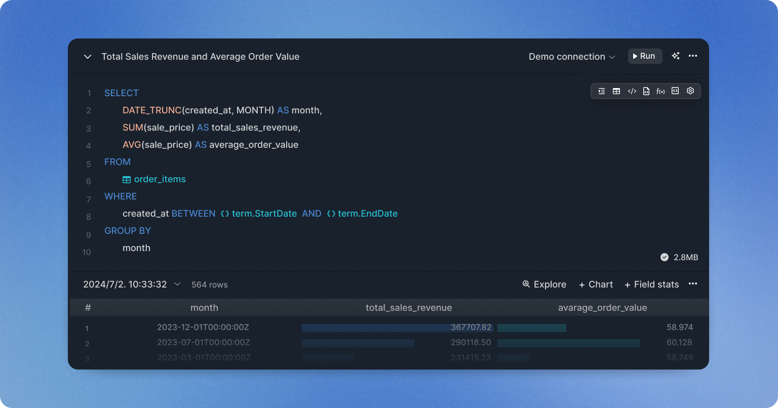 * Execute queries and preview results in real-time using Ctrl + Return.