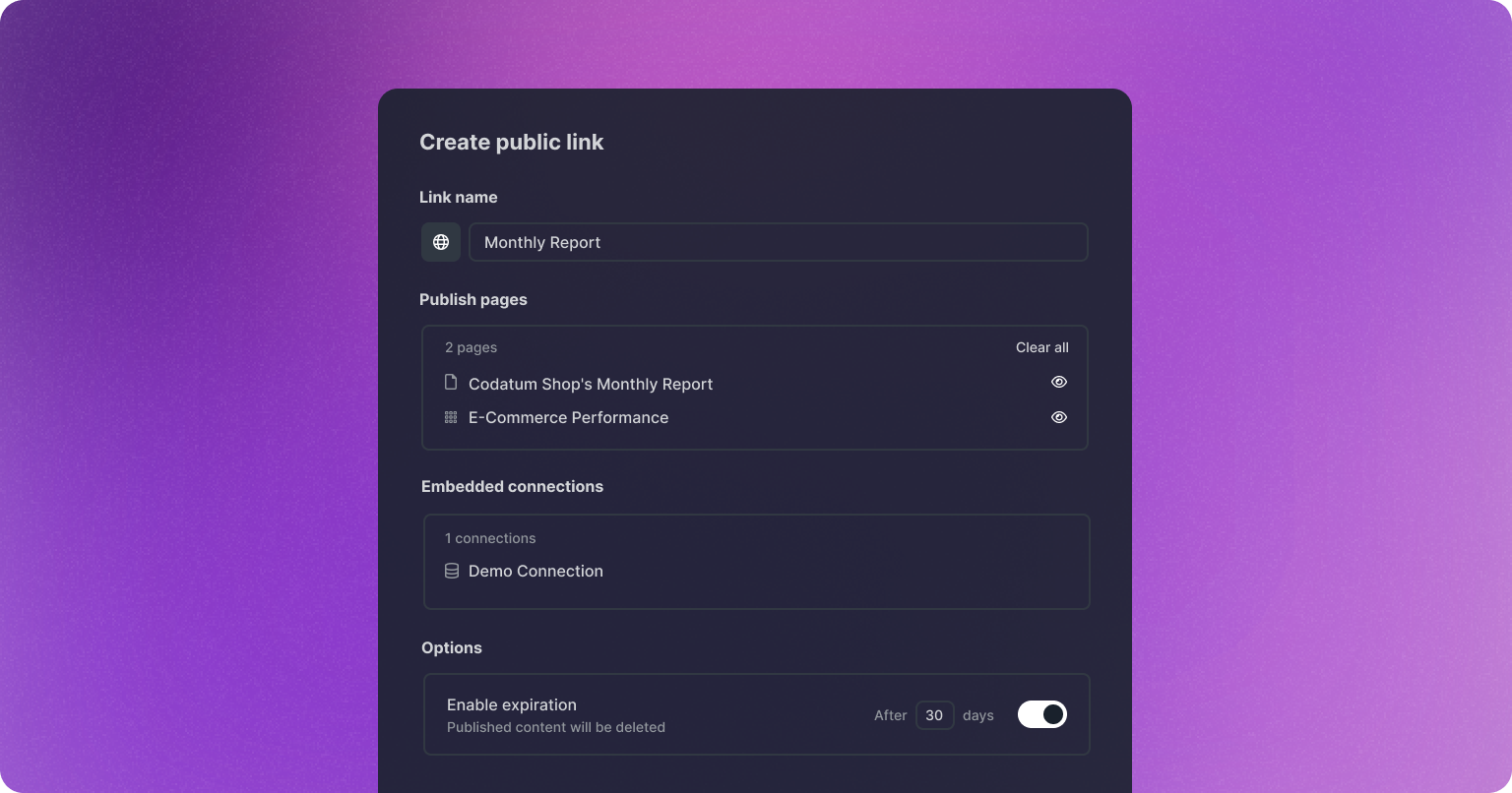* Set an expiration date for the published content to automatically delete after a specified number of days, providing an extra layer of security.